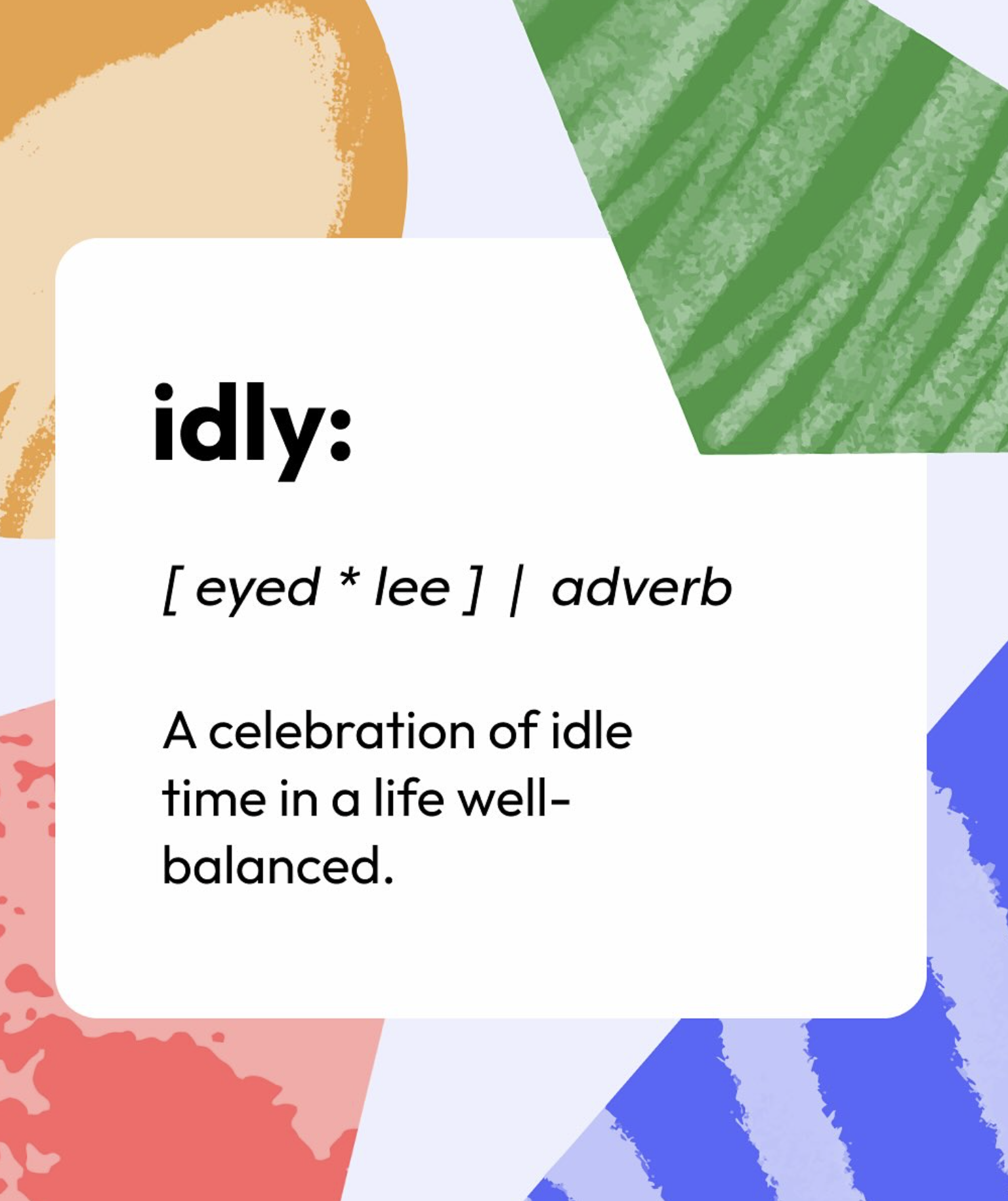 For the calendar, Idly rose to the forefront. It captured the rebellious mentality of the brand, which positioned against productivity apps, aiming to focus on life’s idle moments, where you have time to focus on your purpose. The central metaphor of the brand, which went on to inspire its logo, is the idea of the imperfect art of balancing everything that matters to you.