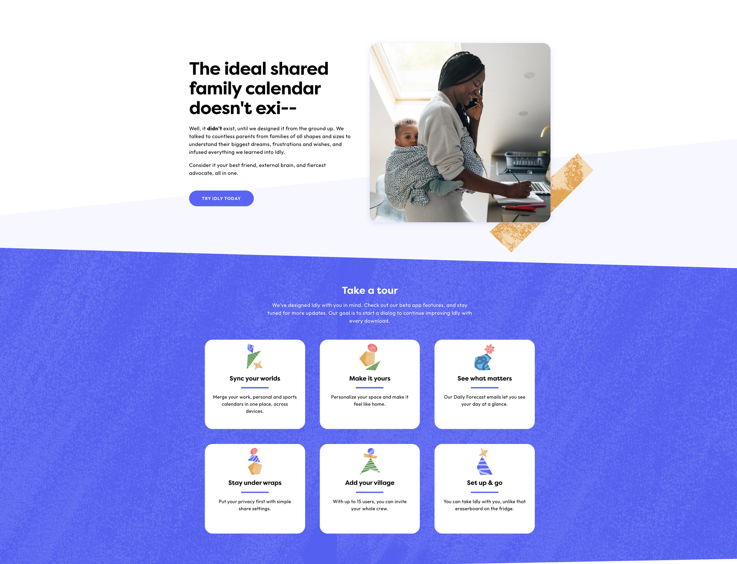 Organizing your calendar shouldn’t be another part of your life that holds you back. Instead, it should open schedules, possibilities, and minds. Idly helps you balance every realm of your life and reclaim your precious time. Together, we can empower families that are done chasing someone else’s definition of how they should live. So let’s stop worrying about ideal, and celebrate real life and all its Idly pleasures.